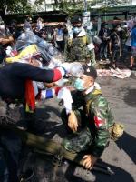 A bit of collateral damage but the fear has been created by introducing a third party (snipers shooting at students). Yingluck government issues statement later in the day for protestors to stop because of a third party...(she is concerned about their safety). According to Ramkhamhaeng Uni Director police was not convenient to help and the students had to wait more than 12 hours for the army to free them from their campus.