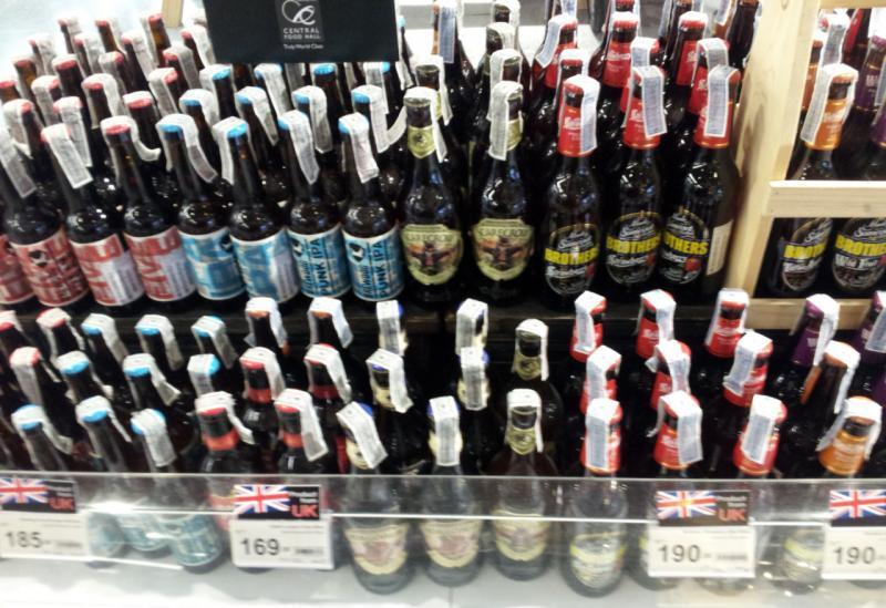 As far as I've seen, it's only the Central stores that are stocking Shepherd Neame varieties like Spitfire Ale and Bishop's Finger at 299 and 329b, respectively, for a 500 ml bottle.