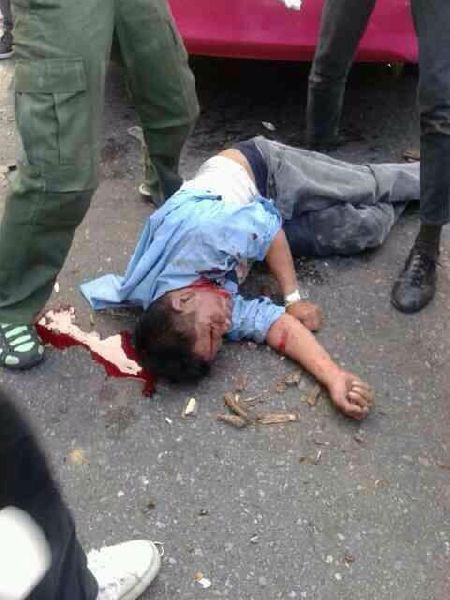 I see many injured. Some of them are compatible with rubber bullet wounds, sure not live rounds. I see someone on the roof. They can be anti riot police, but could be anyone else. Hardly can tell they are armed.