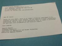 Will be delighted to let you all know when we get the visa without financial or accommodation information.