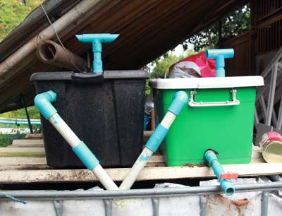 Above the fish tank are containers for BSFL, when ready the larvae drop straight into the tank, where the fish are waiting. IMG_7362.jpg.80a7dfb1913459554f0fbd94f550ac96.jpg