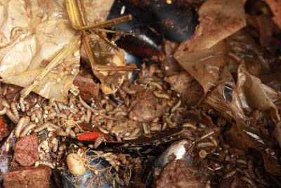 Here are the larvae, they eat food scraps (much of the chillies etc. that is hostile to worms).