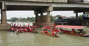 The first part of the Red Shirts rally is by boat & they will be escorted by Marine Police from Ayutthaya #Thailand pic.twitter.com/8lRTevFZtM