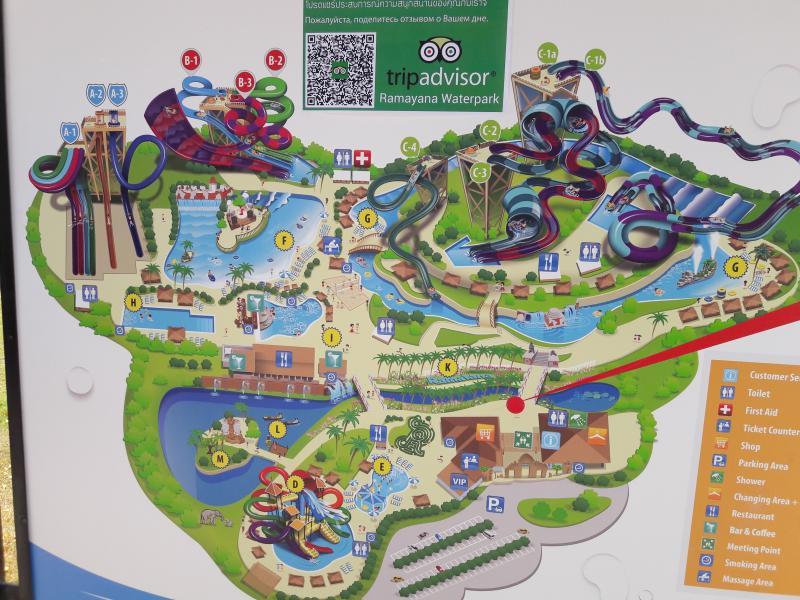 So I took a group of 3 kids (adults) and myself to the Ramayana Waterpark the other day and here is my report. Its located directly behind the Silver Lake Winery complex, about 25 minutes drive from Pattaya. There was ample free parking. The prices are on their website...pricing is by height...under 90cm ("kids") is free...90-122 ("child") is 790, and anything over is "adults" at 990. There are some rides where kids and children aren't allowed.
