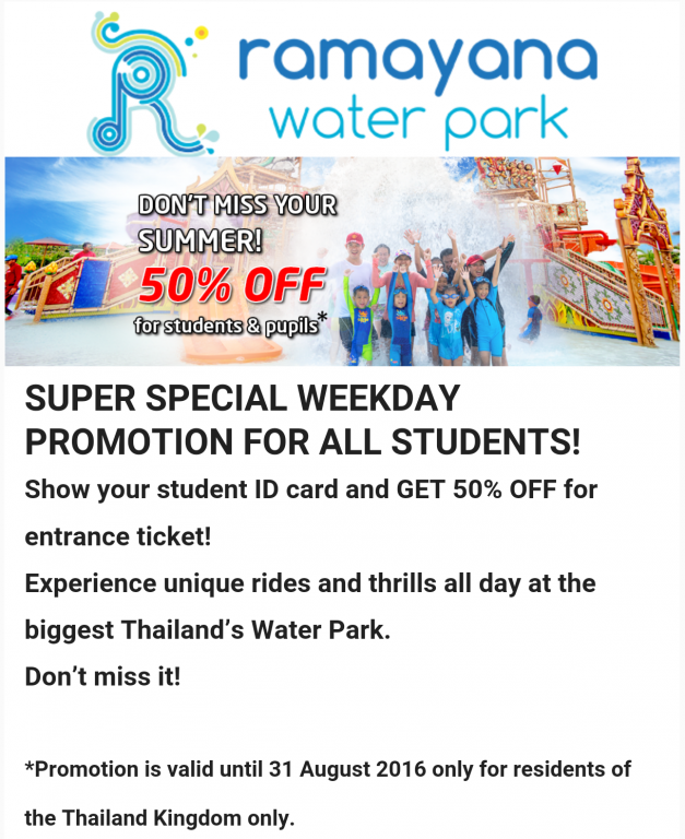 After my failed visit to Ramayana in the week I can say that using the freely available discounts for both the CN worked out Bt.437 cheaper on entry fees for our group of four adults and two kids. Having said that the overall day would probably have worked out cheaper at Ramayana when taking into account locker price and food.