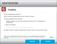 somewhat on topic, i was very surprised when i went to upgrade filezilla the other day that when i went to sourceforge and downloaded it i did not in fact download filezilla, but the 'sourceforge download tool', which then prompted me to install filezilla along with several other crapware programs and a toolbar. it never even occured to me to check carefully as sourceforge has always been a reliable and trustworthy download site which i have used for many, MANY years. very disappointing to find that they are now resorting to this trickery. lesson - ALWAYS read the installer details very carefully, even from a trusted site and a know and trusted application!