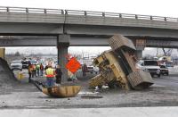 Hit by trailer truck, Nonthaburi pedestrian overpass collapses