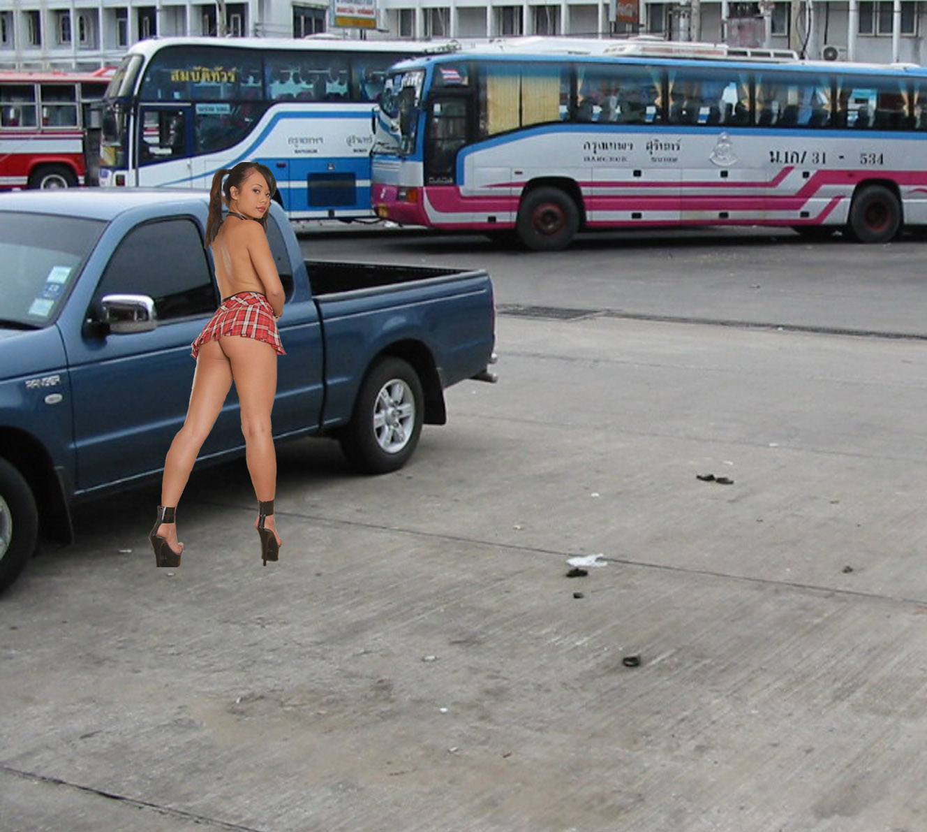 If you look close, it's photoshopped; bum-girl into other pic...
