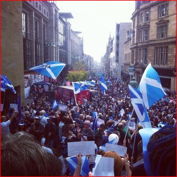 Look at the pictures again and tell me the BBC were representative in their reporting.....oh and Buchanan St willl be full of YES supporters again today....let's see what the BBC make of that!