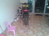 I don't really have any photos yet (except my avatar, in Myanmar, and was a rental bike). I'll take one soon here in Thailand when I can leave my bike alone long enough to find a camera!!