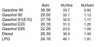 I may have misspoke about the fuel name. Gasohol 91 is probably the appropriate term. It's always Gau-neung at the pump. Performance wise, you're probably not going to notice a 5% drop much. However the fuel economy drop was definitely noticable for me. I just checked yesterday and on my last fill up I'm running 12+ Kilometers per litre without trying. When i was Running E 20, it was an effort to keep it in the low 10s. I did notice a big drop getting stuck in bangkok traffic. Highway wasn't too bad though. Still for my last trip to Kanchanaburi I switched back to 91 to deal with the hills. With 7 people in the car, I need the extra range and power on a long trip.