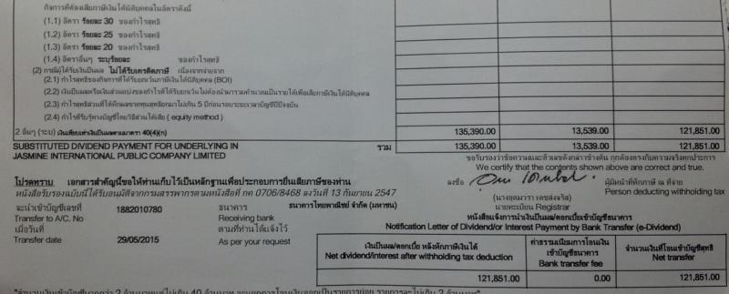 Got me confused, I just got 206,000 baht after tax from Jasmin. Hard ot keep track of all those dividends. Enjoy my trader friends. Learn how real money is made by investors.