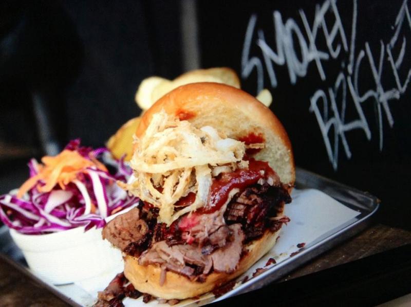 Wow! Even though expensive, I can't wait to try it. I went to their website (Facebook) and found some pictures of the food. It actually looks like smoked BBQ and they do serve beef brisket (and ribs, and pulled pork, and fried okra, and smoked chicken wings, and hamburger, and they also have a Mexican food menu (which I think is a mistake from the get go.....should focus on smoked BBQ, southern USA style). The only thing I did not see is smoked sausage, cole slaw and potato salad, which are a must for a real smoked BBQ place. Here are the pics: