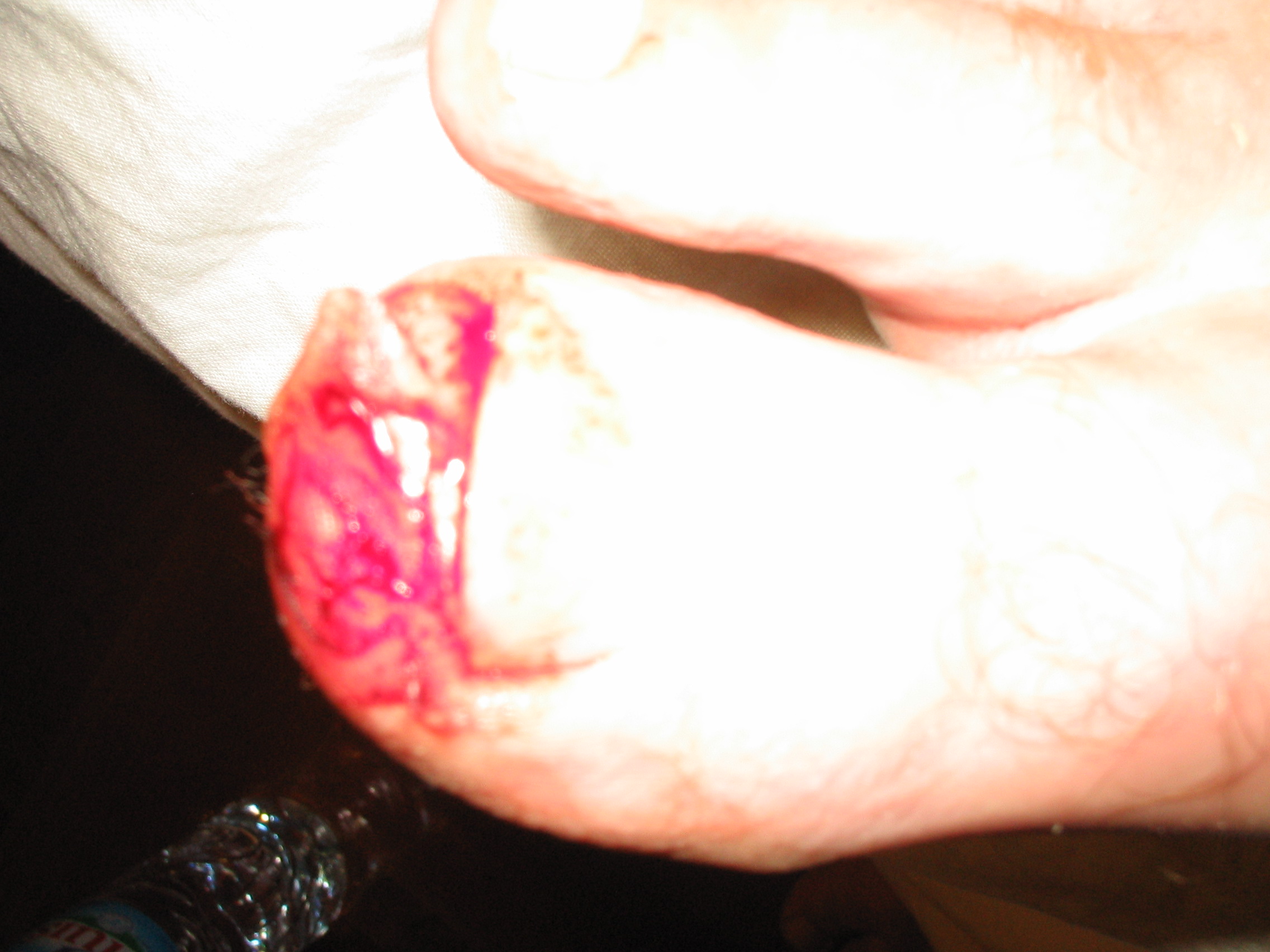It looks a lot different now.There's a good chance I'm gonna lose my nail :DI'll take another pic later when I remove the dressing :D