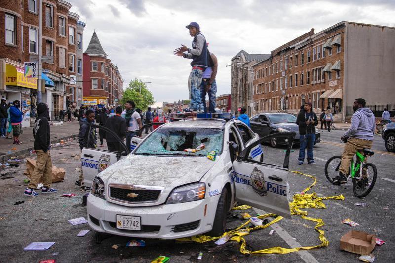 Riot erupts in Baltimore after funeral for man hurt in police custody