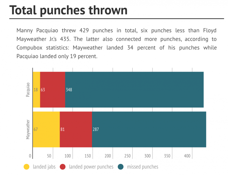 Count the punches thrown by each boxer. Mayweather threw a lot more punches. Count the ones that scored. Mayweather landed a lot more scoring punches. Figure the percentage of punches thrown to punches scored. Mayweather wins that too although that doesn't matter in the scoring.