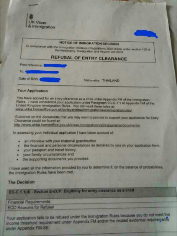 1. The decision will be reviewed by the Embassy in Bangkok after the appeal notice is submitted, and the ECM may overturn the decision if he wishes to do so ( having seen the required documents) or,