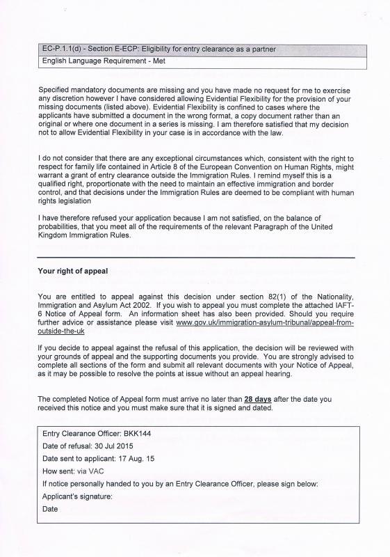 May 13, 201510 yr To be fair, the financial appendix form does refer to the guidance on the financial requirement and tells people to read it first.It also contains For each financial source you rely on to meet the financial requirement you should submit the relevant evidence with yourapplication as specified in the Immigration Rules and policy guidance notes. However, the policy guidance notes say 3.4. Evidential flexibility3.4.1. Under Appendix FM-SE there is discretion for decision-makers to defer an application pending submission of missing evidence or the correct version of it, within a reasonable deadline set for this. Decision-makers will not have to defer where they do not think that correcting the error or omission will lead to a grant. This is discretionary, but as it seems the only reason for refusal was the missing documents I cannot understand why the ECO did not exercise this discretion.Having said that, it does seem that this refusal is within the rules, so I'm not sure if an appeal will achieve anything.But, I feel you need professional advice on that point, and recommend you contact a reputable, OISC registered professional without delay.If in Thailand, I would recommend Thai Visa Express, one of this forums sponsors.