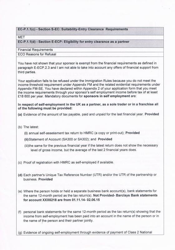 June 5, 201510 yr Refusal pages from 25th May 2015. The problem I have is that everybody needs to meet the £18600 financial requirement, ok far enough, my CT 600, SA 302 etc.... shows my company gross income was £22,601, in which the ECO agrees I met, therefore I meet the requirement. Do they not realise that this is gross income? what if my cost of sales are £22,600? my profit could be £1 for all they know, so I would not met the £18,600 would I? It's just a unbelievable way of calculating if I meet the requirement, it proves they don't know what the hell they are doing. I except that I our supporting evidence did fall short of a few documents, Payslips mainly (if issued) how on earth does the ECO know that my company issues payslips? good guess, they actually are. They should of contacted me, £950 down the drain. Let see what happens this time. thanks Paul,