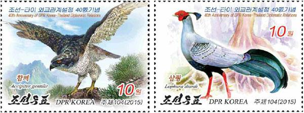 The two nations released commemorative postage stamps featuring their national birds, the Northern Goshawk and Siamese fireback, meaning citizen-internees of the DPRK can swell with pride when their pre-opened mail shows up three months late.