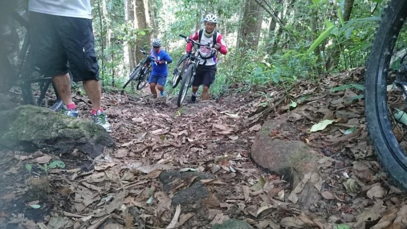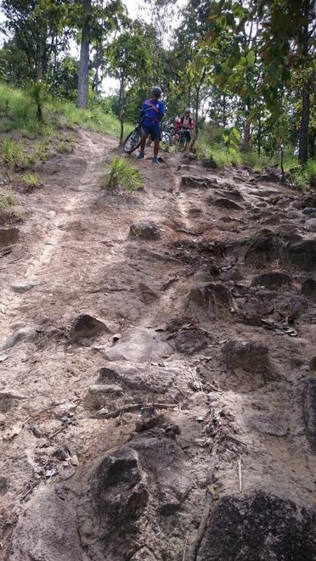 Gee House, in the MTB club I ride with, a young Thai guy and I are the only ones with hardtails, we walk half the way down, the others ride.