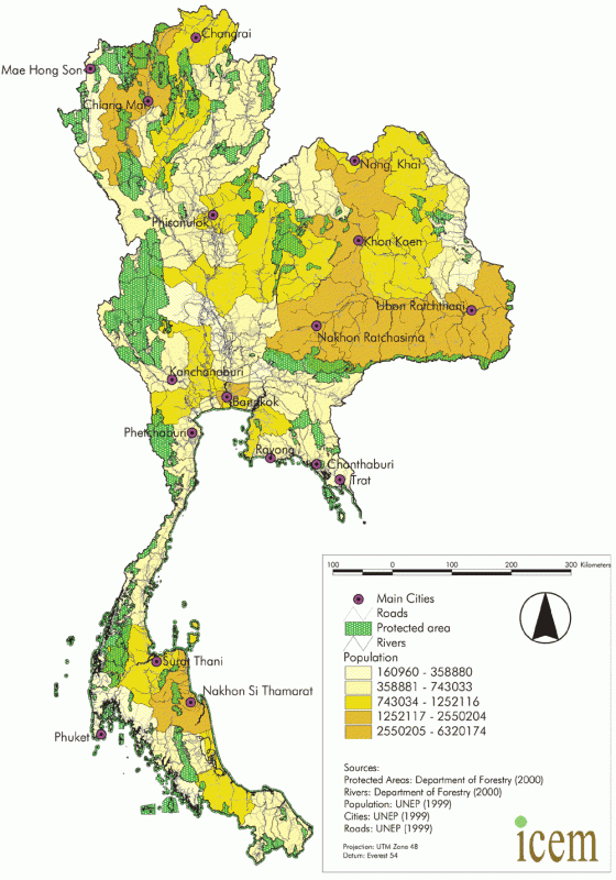 - Bangkok has one of the highest population densities but is the smallest regions.
