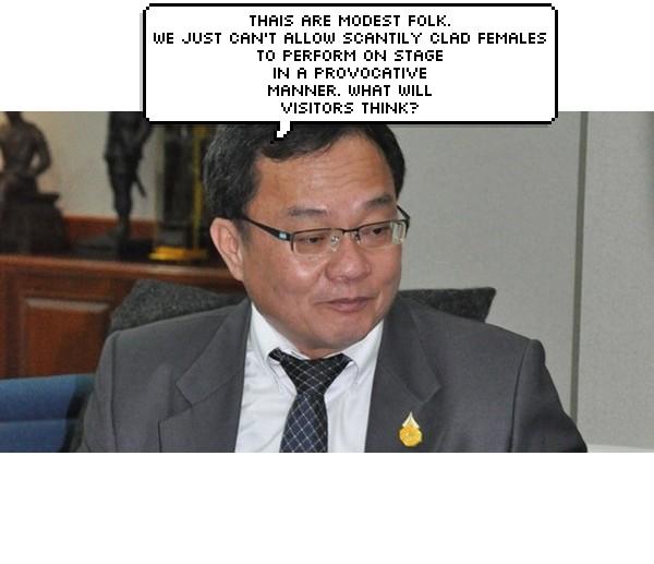 If it's OK to have a "sexy" scantily clad coyote girl "singing" at funerals (which they do quite often at the Wat near me), I don't see the problem with having one at this event. Or is this mock/fake outrage meant to mean they actually don't like their homegrown girls doing this kind of stuff?