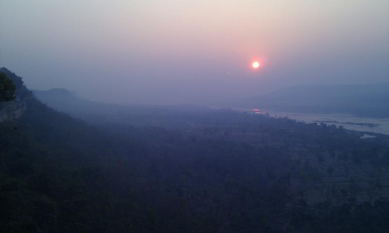 Pha Taem National Park early morning, before sunrise, is a must. You can sit right on the edge of the cliffs, and watch the sun appear from behind the mountains in Laos.