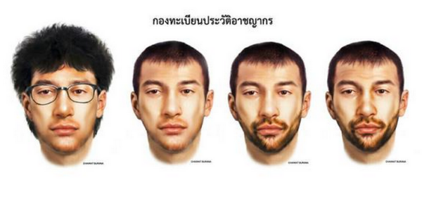 Thai police releases sketches linking the main suspect of a deadly bombing in central Bangkok on August 17, 2015 to Bilal Muhammad. (Photo: Thai police)