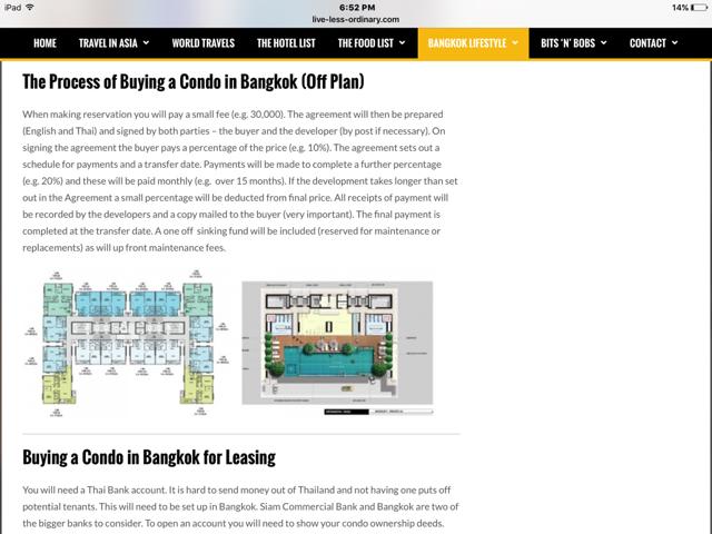 Now, I don't doubt for a second that many speculators make decent money reselling units. I have bought a contract 2 years ago on a mid range condo (which I wanted to keep), but sold it for a 30,000 profit after I read many complaints about the builder. When I bought a contract there was this one guy buying 10 units in this building. All he had to do was book a room (3000 baht each room) and then sign a contract 30 days later which was 10,000 per unit. Then every month he would pay 6,000 baht until the condo was built and a final transfer was due. This is not a lot of money you need to speculate. Since the condo was in a very good location and was sold out pretty quickly he could not possibly lose any money and had 2 years to sell his 10 units. Low risk, high reward. If I was able to sell my contract for 30,000 baht profit (I didn't want to negotiate too much), he probably made 300,000 baht for half days work.