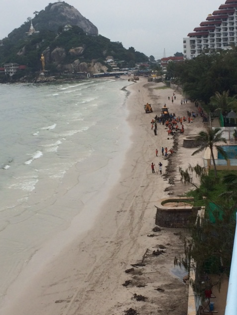 Several kilometers of the beach, stretching as far down as Khao Takiab in the south of the town, had been covered in thick oil and debris.