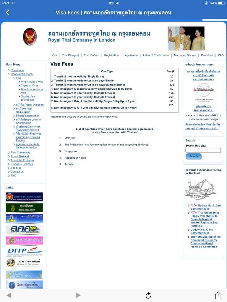 November 4, 201510 yr Just been on Thai Embassy, London. New visa fees from 13/11/2015 http://thaiembassyuk.org.uk/?q=node/76 Visa Fees Visa Type Fee (£) 1. Transit (3 months validity/Single Entry) £20 2. Tourist (3 months validity/Up to 60 days/Single) £25 3. Tourist (6 months validity/Up to 60 days/Multiple Entries) £125 4. Non-Immigrant (3 months validity/Single Entry/up to 90 days) £50 5. Non-Immigrant (1 year validity/ Multiple Entries) £125 6. Non-Immigrant (3 year validity/ Multiple Entries) £250 7. Non-Immigrant O-A (3 months validity/ Single Entry/Up to 1 year) £50 8. Non-Immigrant O-A (1 year validity/ Multiple Entries/Up to 1 year) £125 Let's take a look at that properly. ImageUploadedByThaivisa Connect1446667057.898736.jpg And, as I pointed out in this thread http://www.thaivisa.com/forum/topic/857598-confirmed-new-multiple-entry-tourist-visa-for-thailand-available-from-november/?p=10041434 it's the same price (£125) for a Multi TV that lasts 6 months or a Multi-O that lasts a year! What the **** ?????? The idiots haven't even updated the application form - still says "Tourist Visa (1, 2 OR 3)" with the only Multiple option referring to the "O"