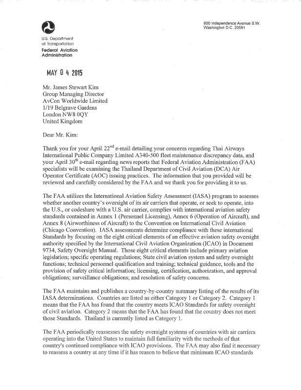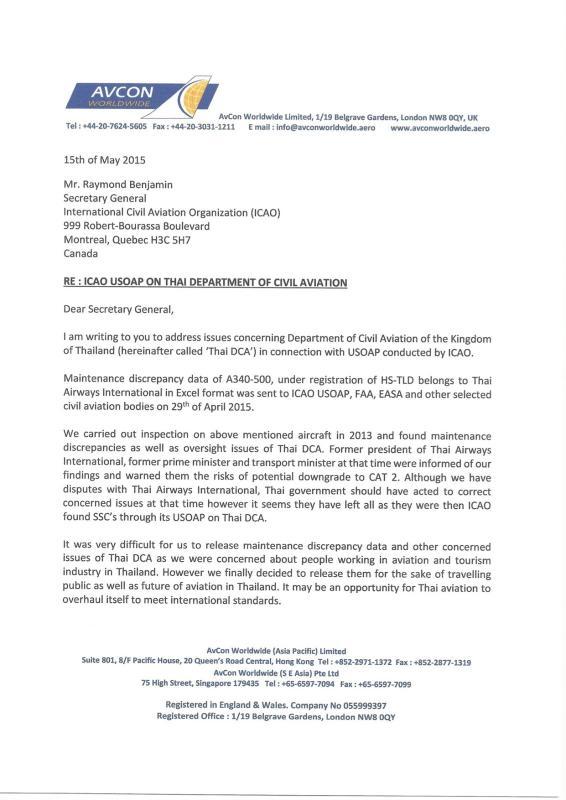 I really really hope that Thailand can sort out their registration and licensing systems to the satisfaction of ICAO, FAA, EU, etc, but I am also aware that Thailand's Civil Aviation Authority licenses the airports, Air Traffic Control and Air Navigation systems. If ICAO find serious flaws in the Thai Civil Aviation Authority systems, some airlines might well take a second look at flying into an environment where the ATC etc are not up to the minimum international standards.