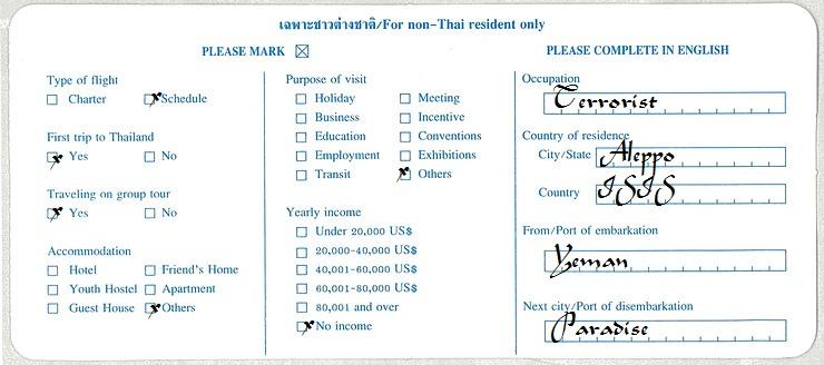 December 5, 201510 yr It is quite straight forward to check the immigration computers to see if anyone with an ISIS passport has arrived in the country and filled in "terrorist" in the occupation box on the arrival card.