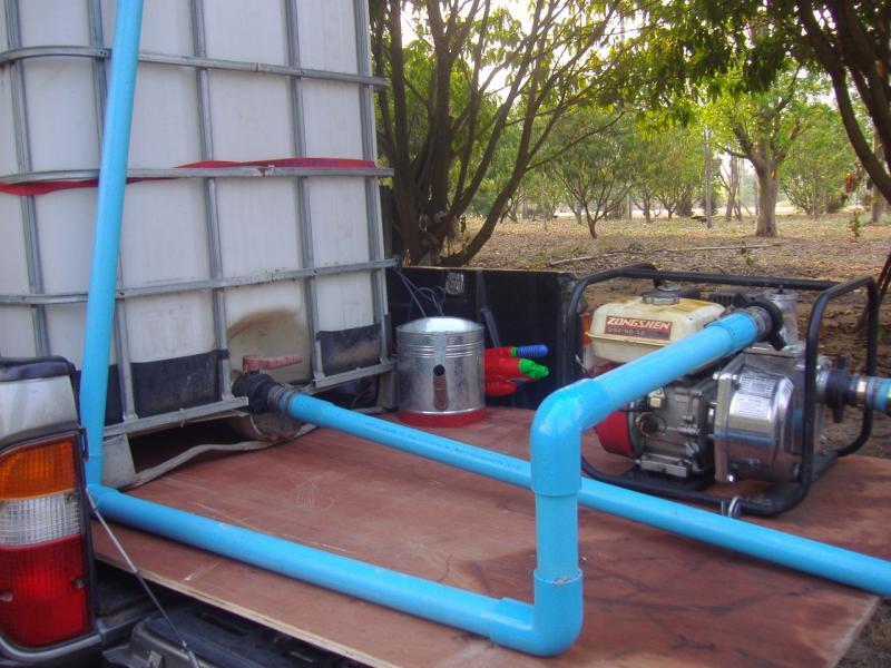 My supply today came from the fire truck where they filled 6 of my ongs with about 7,500 litres. It is free but I gave the 3 guys 50 baht each and they filled another one for me.