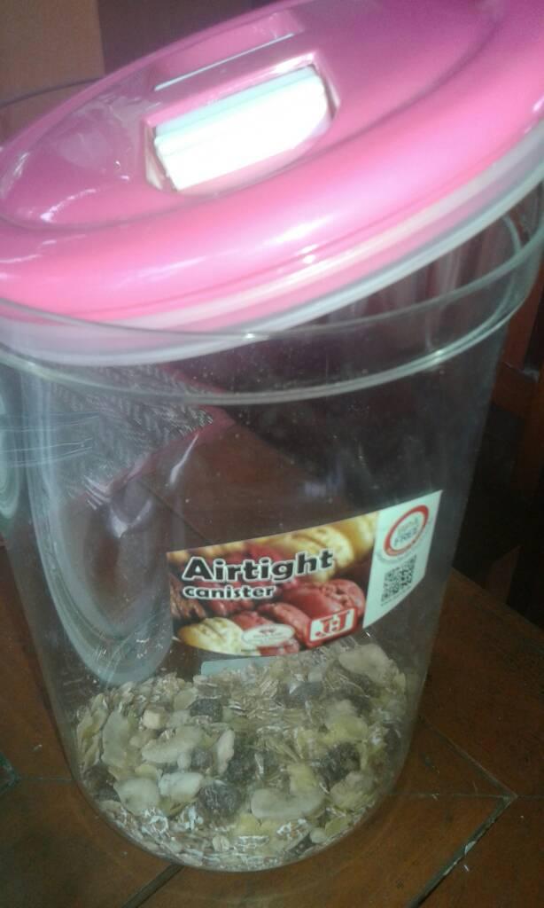 Muesli is back on the table tomorrow but tonight i will suspend the container from the ceiling with a greased piece of string and a circle of bayleaves around the string.