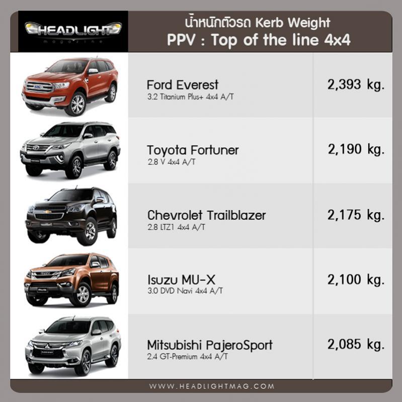 Don't get me wrong, I like the Everest but its FAT, even allowing for its features. It is also more powerful so always going to suck fuel faster than it's competitors. Our Everest uses at least 10% more fuel than our old PJS and Fortuner. The 4 cylinder Everest and Ranger are still heavy compared to their competitors so it not just the 5 cylinder engine.