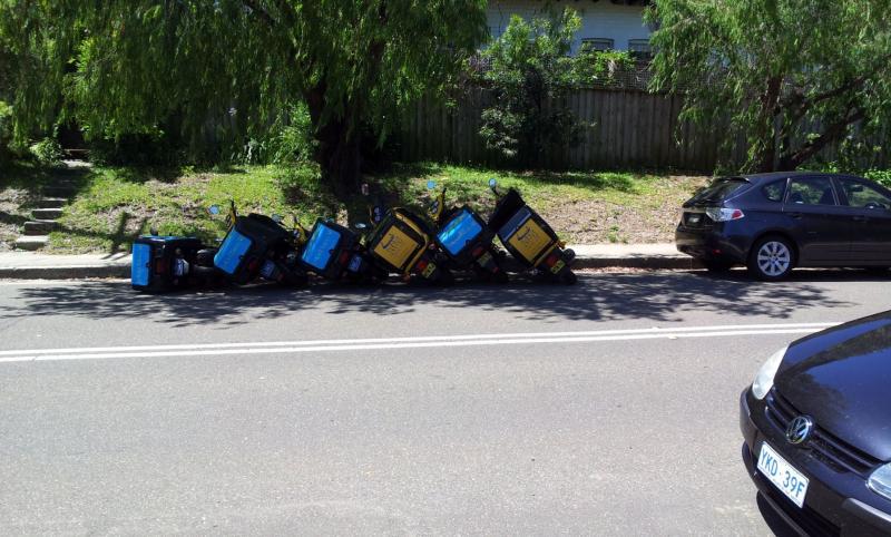 All the other two bikes in front of the computer shop were gone when I got back to the Chicken stand, not just the two that were knocked down. This is right in front of a Lotus Express, and people are pulling in and out every 3-4 minutes.