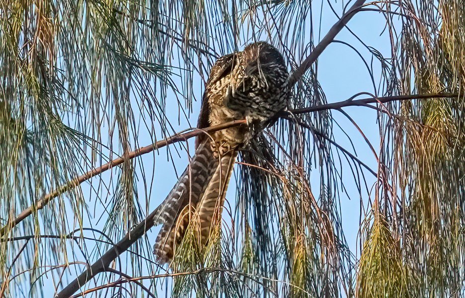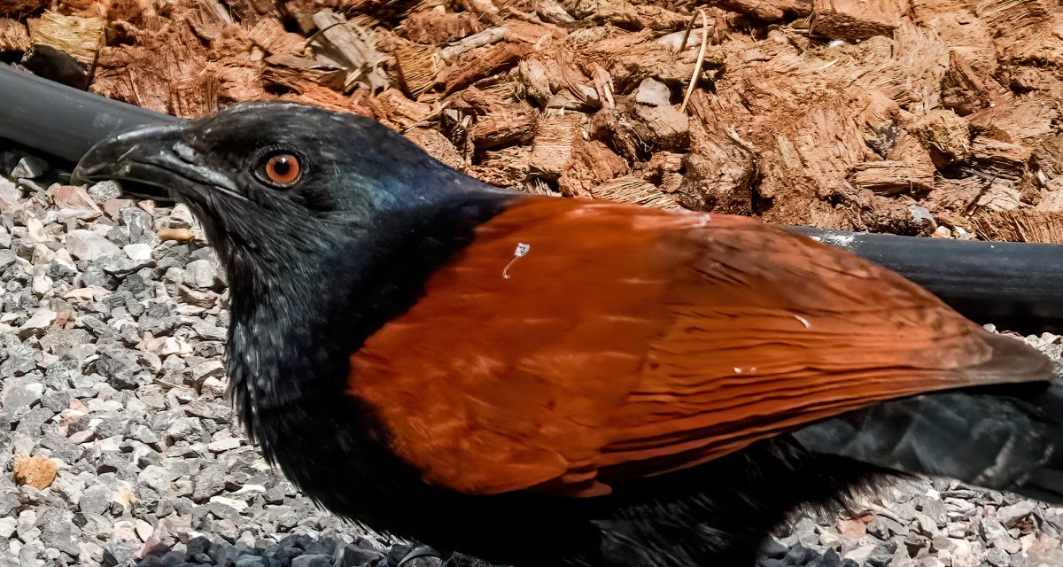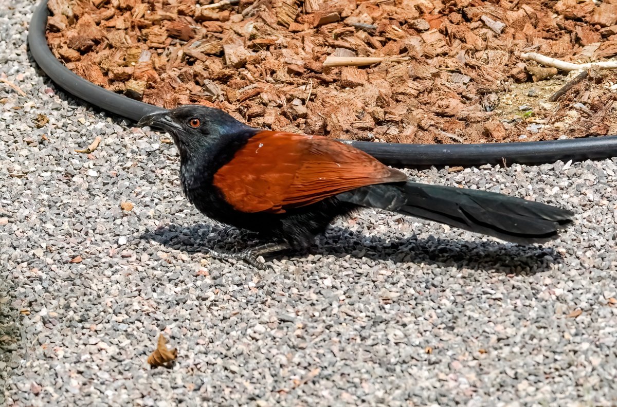 I do the morning snake recon, before letting the dog out, and the owls are sitting on the dead palm tree, koels are yakking away, Kingfisher over by the greenhouse, bee eaters & mynas on the wires, coucal hopping around, skittishly, and take off into the brush if sees me. Sunbirds don't visit too much, or I just don't see 'em.