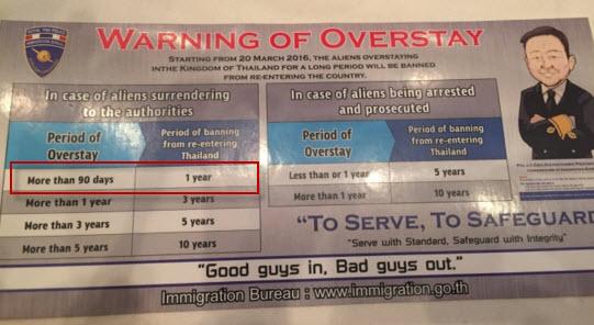 The new rules and regulations on overstaying announced by the National Council for Peace and Order on November 27, 2015 will become effective March 20.