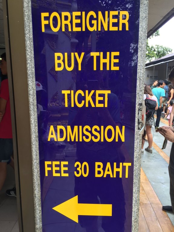 Temples: Thais cheaper than foreigners for example