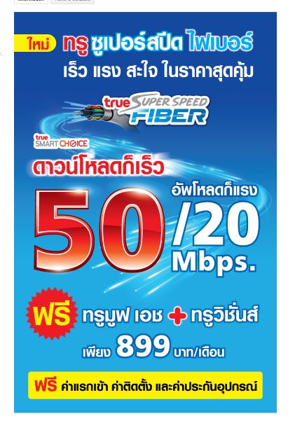 Looks like True has changed their 50/10 promotion for Bt899 promotion to a 50/20 promotion for Bt899......increased the upload speed from 10 to 20Mb.  To me that implies their 50/10 promotion (which was a big price drop for True) was not having much of an impact against the AIS and 3BB fiber promotions.