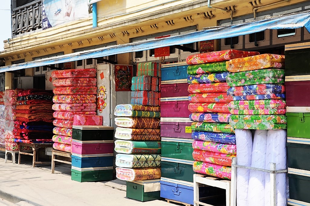 Loads of small wooden ships and barges along the riverside. All goods are transported in a traditional way i.e. in bulk, boxes, crates, drums and so on. But what you do not see are facilities as jetties, cranes and forklifts. All ships are loaded and unloaded with manpower (usually with temperatures above 35 degrees Celsius).