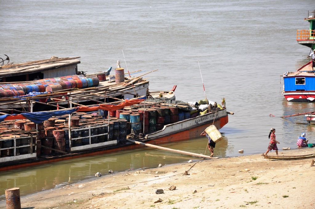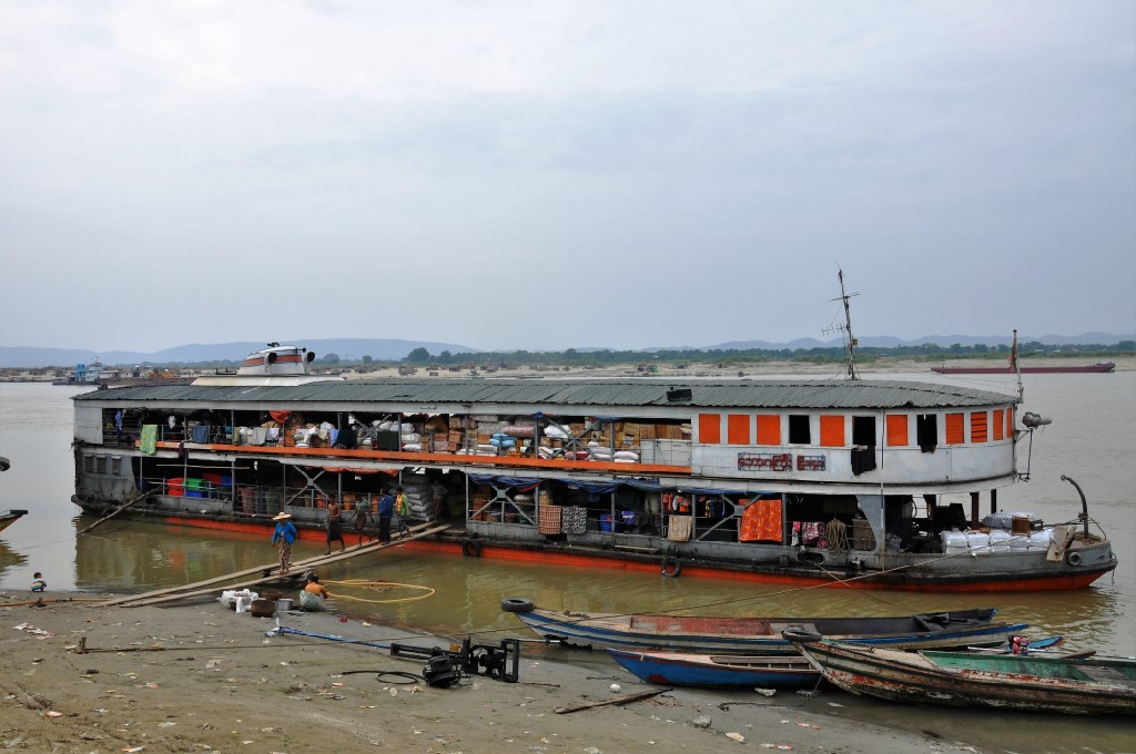 When in Mandalay one of my favorite things to do is having a stroll on the jetty along the Ayeyarwaddy River. It’s a stretch of (say) 3 km where all the cargo ships with destination Mandalay are loading and unloading.