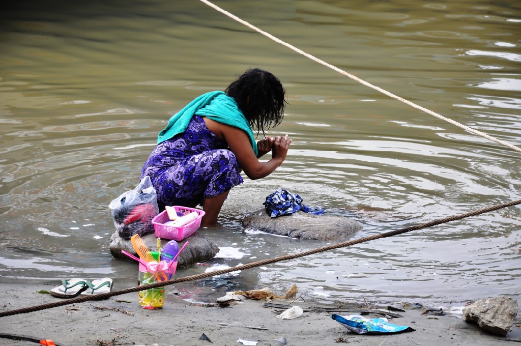 This is a typical example of what can be seen on the banks of one of the main rivers. When the water level is low everyone deposits their rubbish at the banks. After the rainy season everything has gone and all looks clean again.