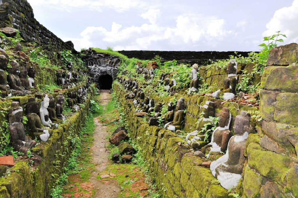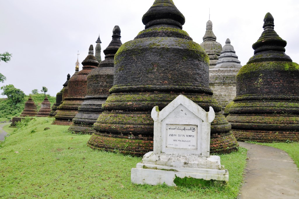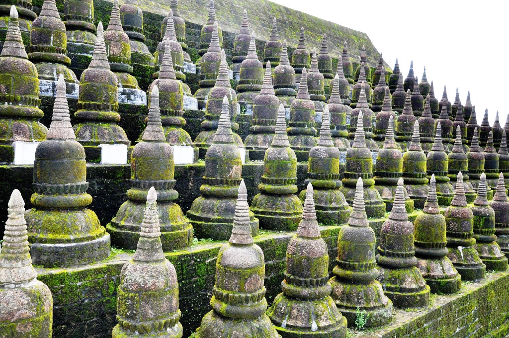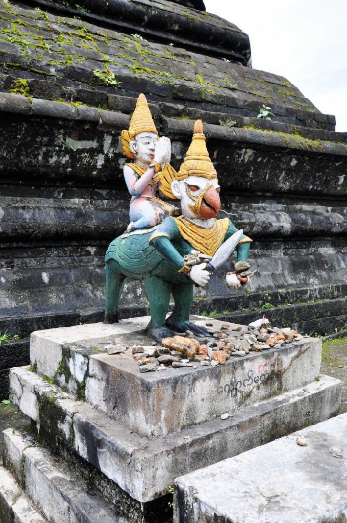 March 17, 20179 yr Myanmar - M’Rauk-U. Ratna-Mahn-Aung Pagoda - continued. The Pagoda is surrounded by numerous little guardians, You can make merit by putting a stone in front of hem. I made a selection.