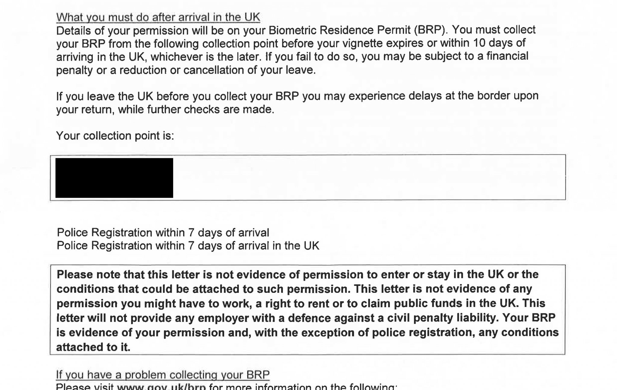 I do have a follow up question though...  In the letter it explains about the BRP (Biometric Residence Card), what it is, where to collect it and when. After this section it just says