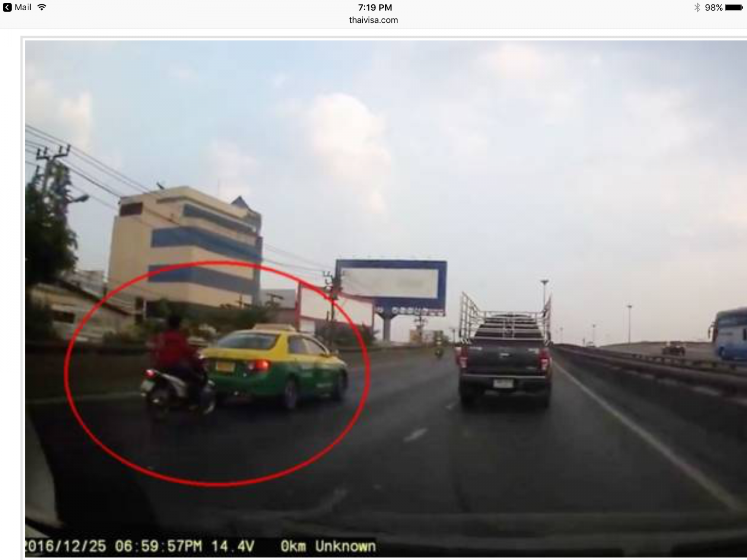 The pick up was just entering the lane , and we all now Thai people drive fast but never accelerate when they should.