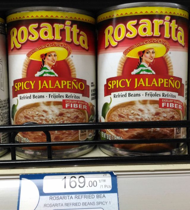 And here's the reasons I'm making my own frijoles at home, instead of buying the imported Rosarita ones from the U.S., which are on the shelves at Villa Markets these days -- at almost $5 U.S. per can!!!