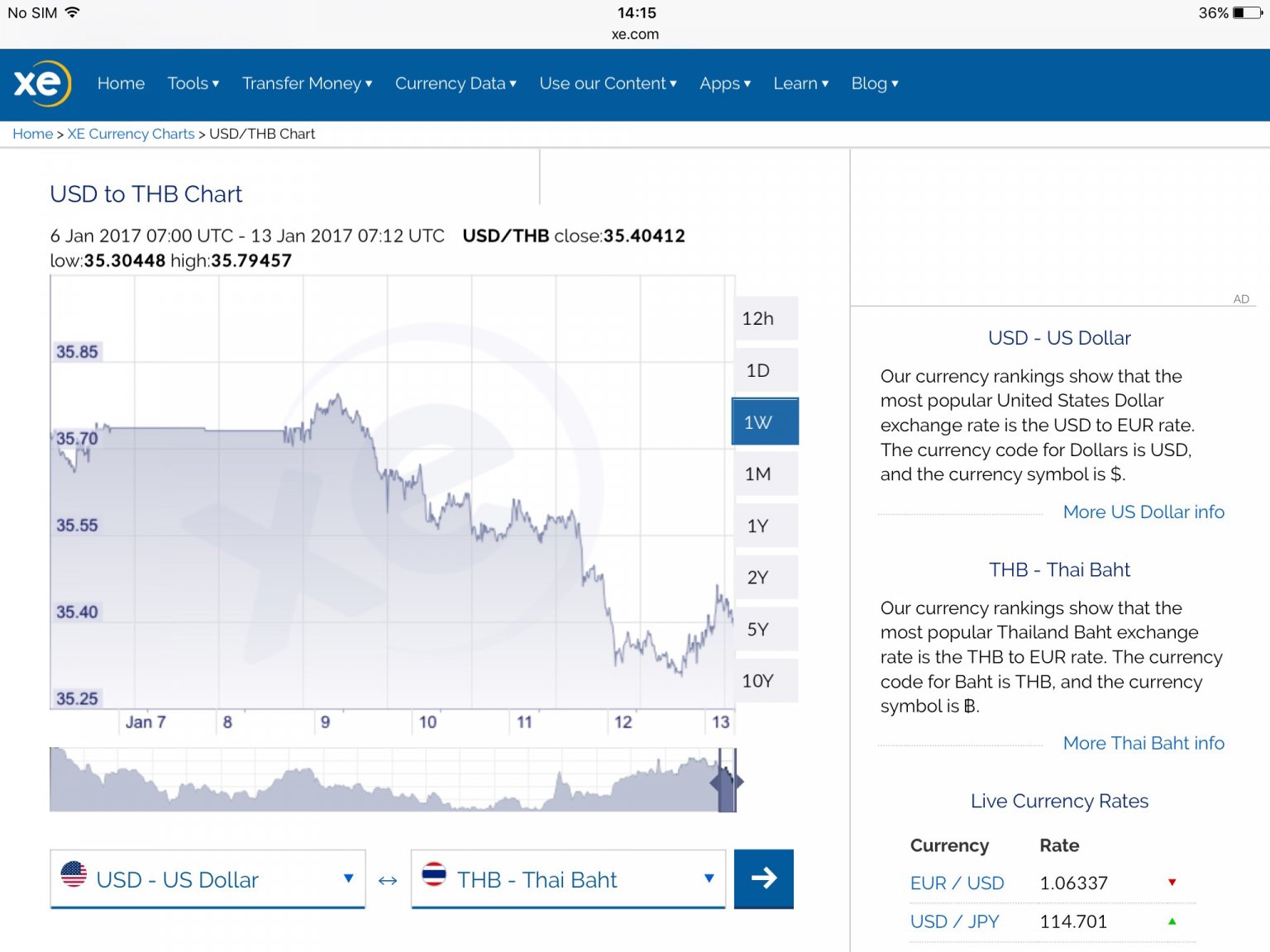 If it takes more baht to buy one dollar that means the dollar is stronger. Right now it takes circa 35.5 baht to buy one dollar, when Baht strengthened against USD it took only 29 baht to buy one dollar.